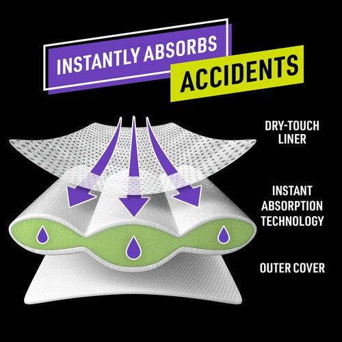 • Instant Absorption Technology locks wetness away rapidly.
