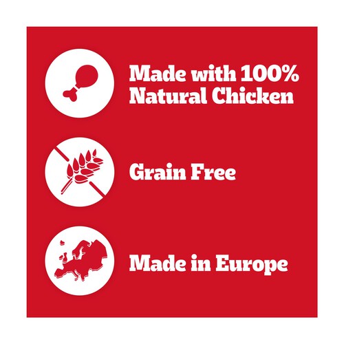 Pedigree Ranchos Originals Chicken Flavour provide tender, delicious rewards designed to bring happiness to your adult dog. These carefully dried jerkies offer an appealing taste and aroma that dogs naturally enjoy.