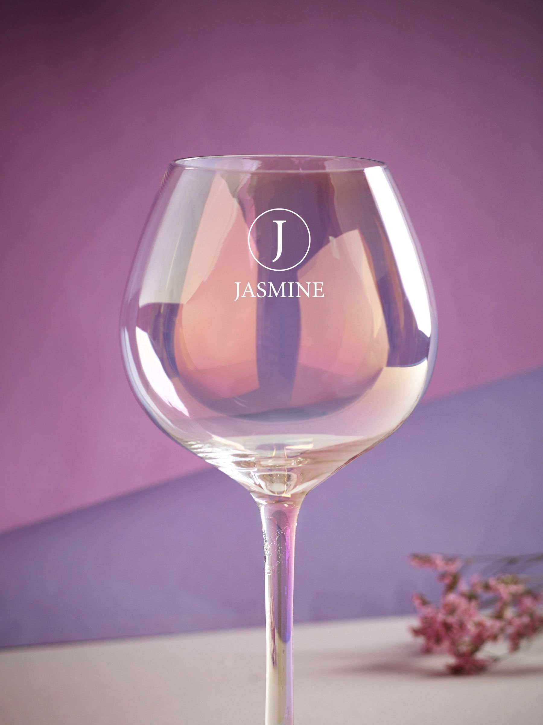 Lovely stylish iridescent gin glass, personalise with your choice of initial and name.