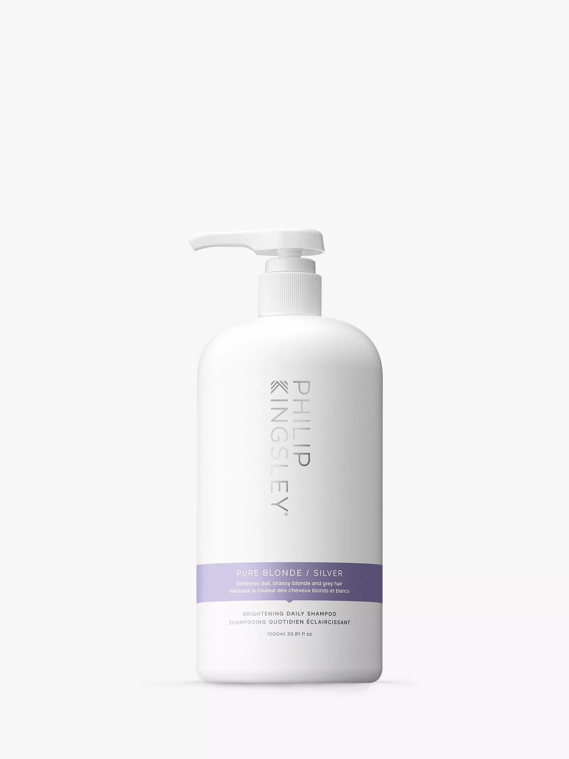 Das Pure Blonde/Silver Brightening Daily Shampoo reinigt und hellt blondes und graues Haar auf, beugt Gelbstich und Glanzlosigkeit vor und korrigiert diese.