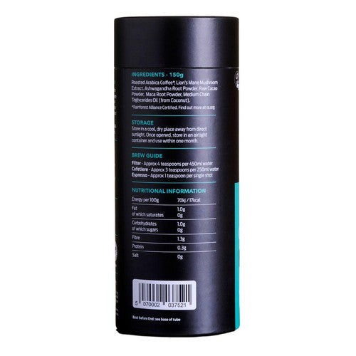 ✔ Premium & natural Ingredients – Single origin coffee from Brazil, Lion’s Mane mushroom extract, Ashwagandha, MCT oil (from coconut), Maca root and Raw Cacao.