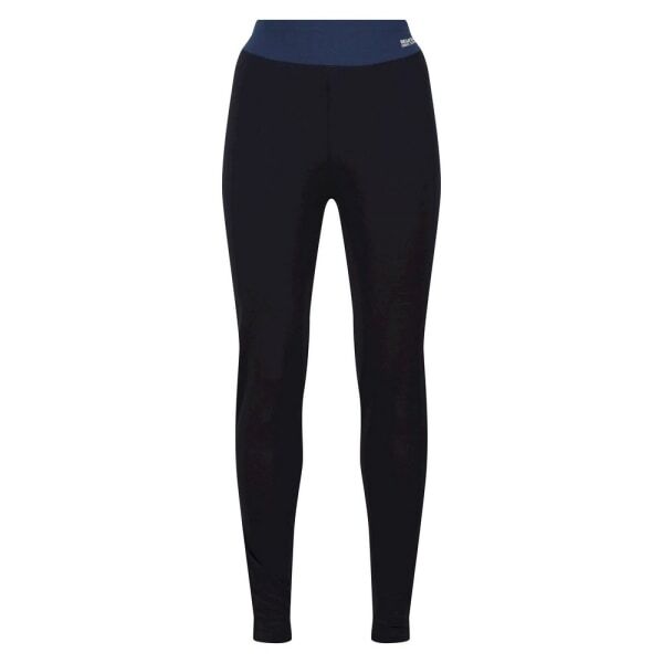 The Regatta Women's Bampton Leggings are constructed from technical polyester fabric that incorporates supportive bamboo yarn, providing a comfortable yet durable structure for activity. These bottoms feature a sporty design element, including a logo detail and a distinctive contrast waistband for visual appeal. They integrate multiple performance fabric technologies to manage moisture and odour effectively.