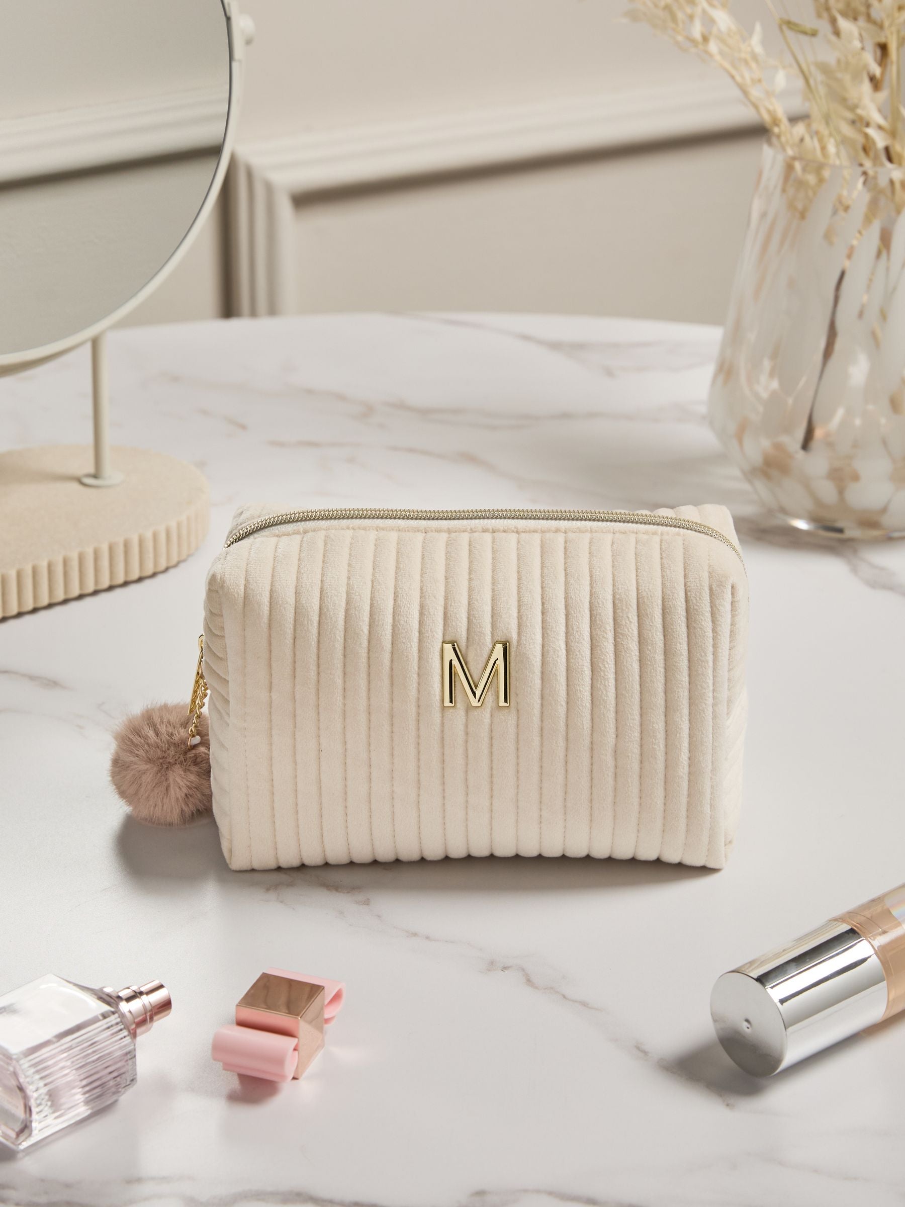 Bewahren Sie Ihre Beauty-Essentials stilvoll in dieser luxuriösen, personalisierten Kosmetiktasche auf. Gefertigt aus superweichem Velours mit schickem Steppmuster und kontrastierendem Pompon, ist sie perfekt für Ihren Schminktisch oder für unterwegs. Ist Ihr Buchstabe nicht dabei? Dann wählen Sie das Herzsymbol als elegante Alternative.