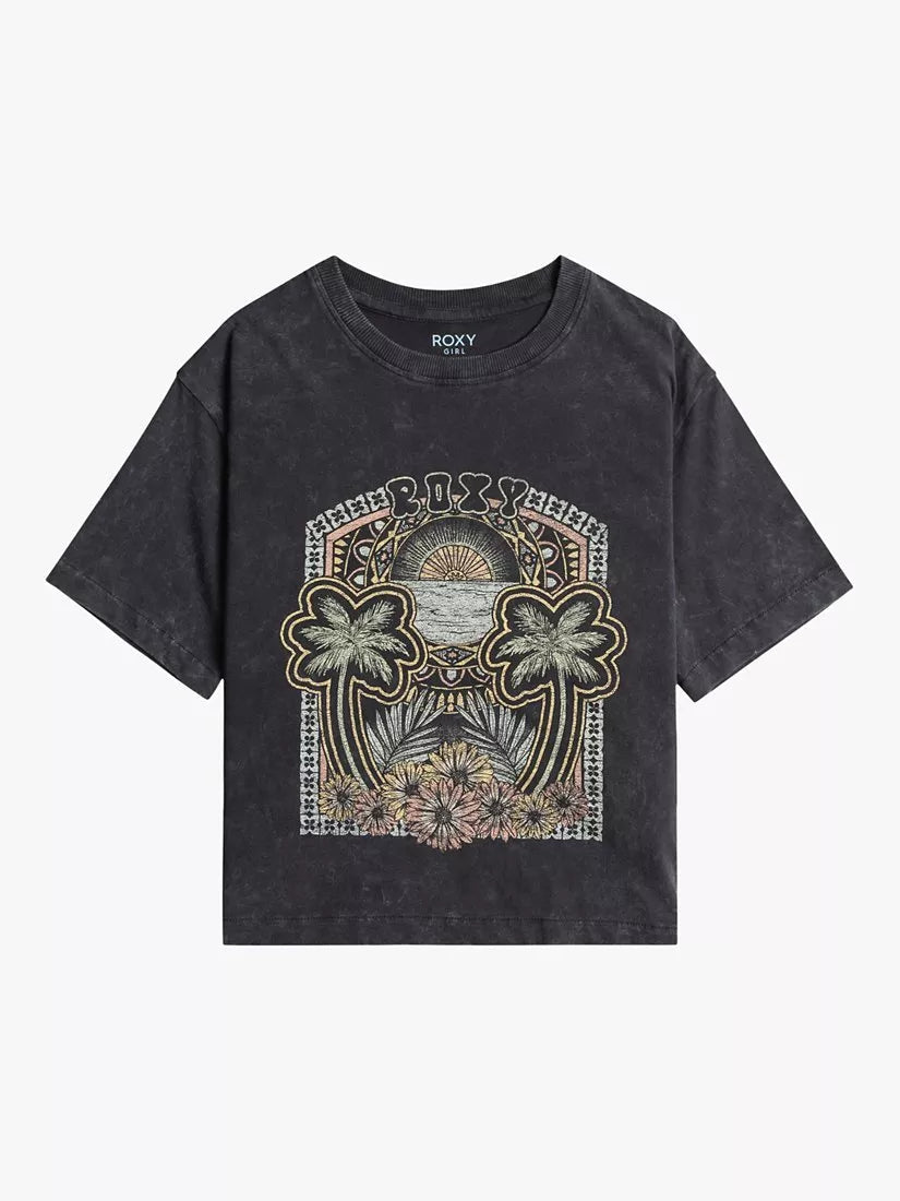 Dieses kurzärmelige T-Shirt von Roxy mit auffälligem Grafikprint ist aus weicher Bio-Baumwolle gefertigt, damit die Trägerin/der Träger alles, was kommt, bequem meistern kann.