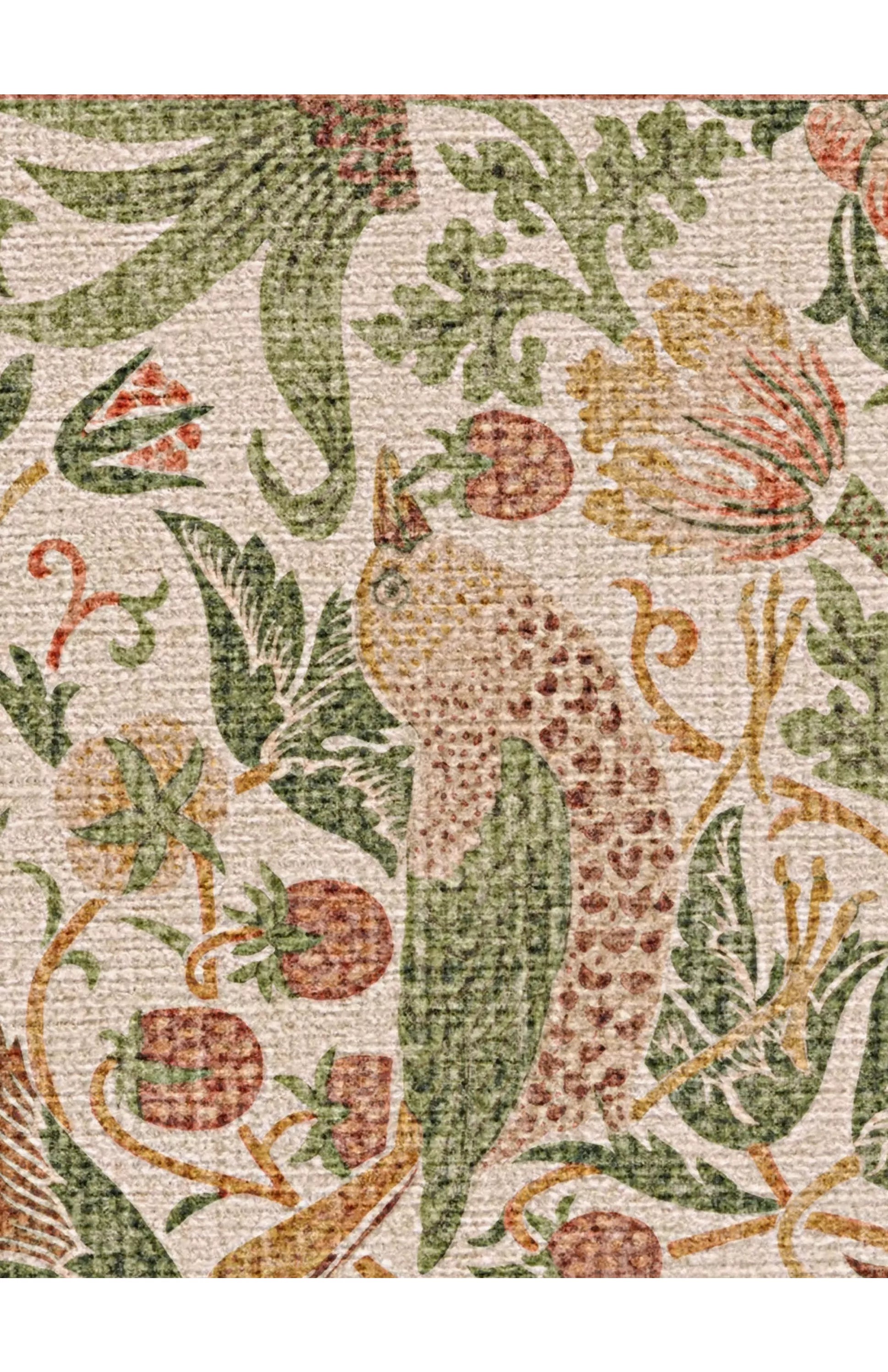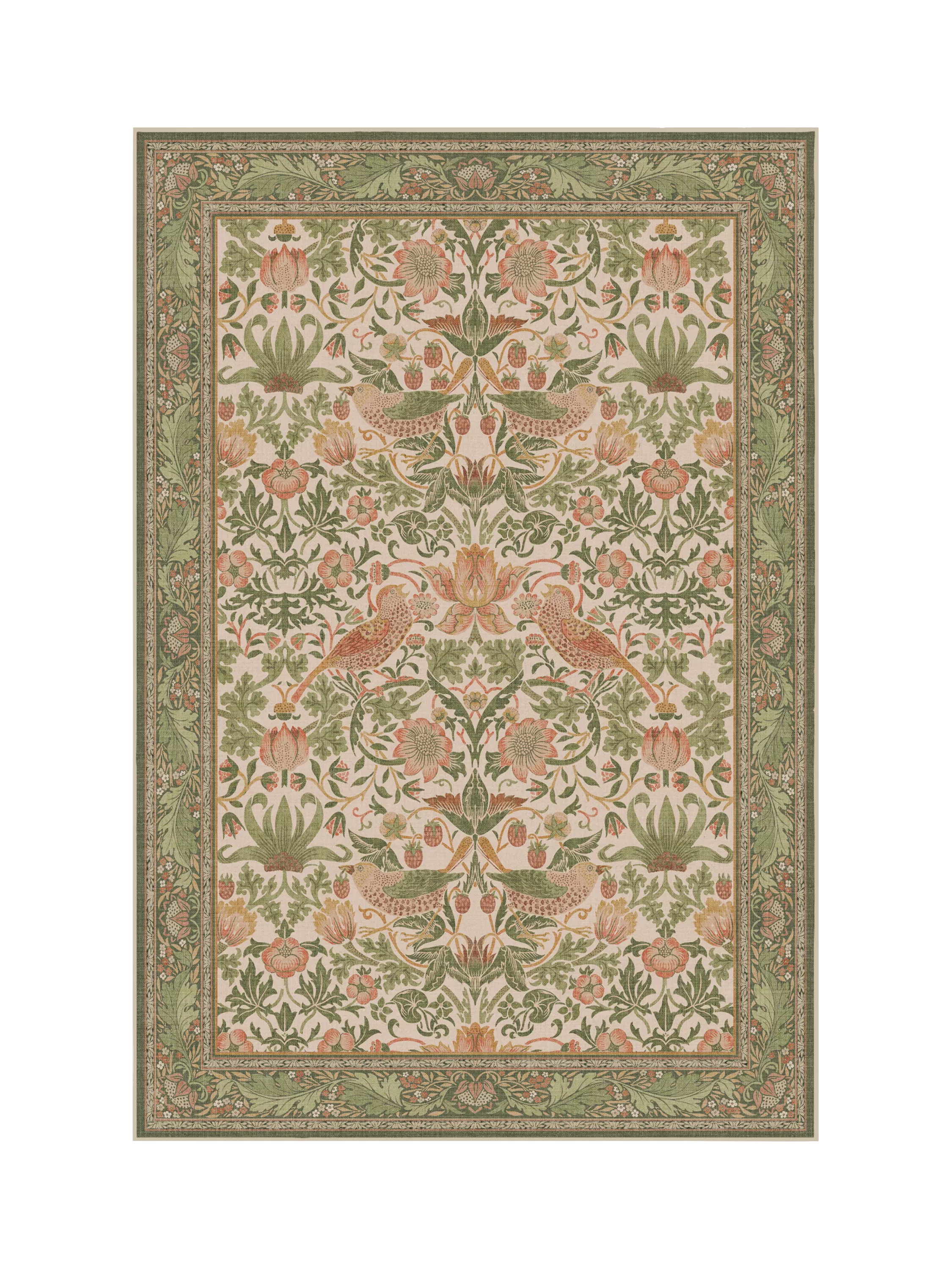 Betreten Sie den Garten von Kelmscott Manor mit dem Teppich „Strawberry Thief“, einem Ergebnis der Zusammenarbeit von Ruggable und Morris & Co. Dieser Teppich, eine direkte Umsetzung von William Morris’ bekanntem Blockdruck, zeigt Drosseln, die Früchte aus seinem Gemüsegarten stehlen. Wasserabweisend, fleckenabweisend und maschinenwaschbar. Die Farben des Teppichs können je nach Lichteinfall im Raum leicht variieren.