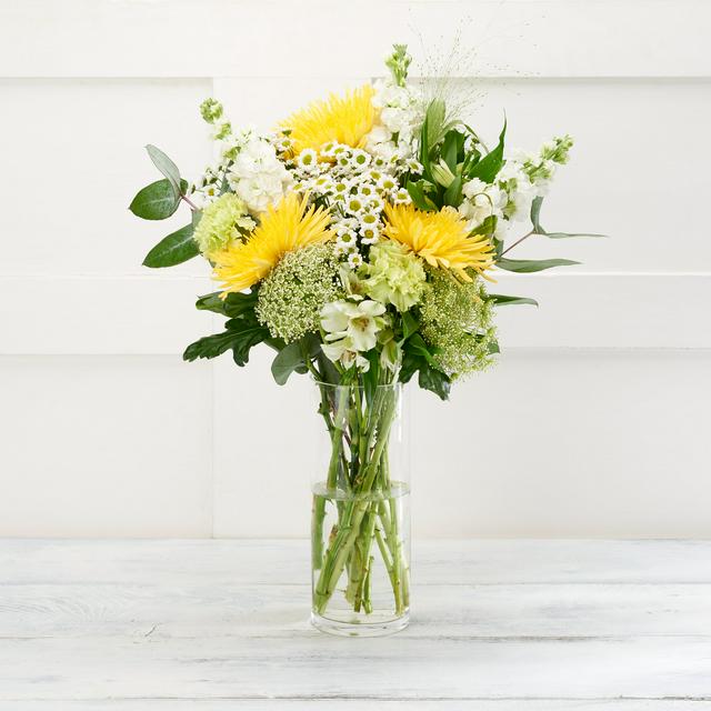 Produktdetails Beschreibung Sonnenscheinstrauß Diese fröhliche und farbenfrohe Mischung bringt Sonnenschein in Ihr Zuhause. Sie enthält große gelbe Bloom-Chrysanthemen, Mini-Madiba-Chrysanthemen, Levkojen, Johanniskraut, Ammi, eine Rose, Eukalyptus und Rhododendronlaub. 5-Tage-Garantie Sicherheitsinformationen Ursprungsland Größe Lagerung Verpackung Hersteller Kundenbewertung (1) Read More