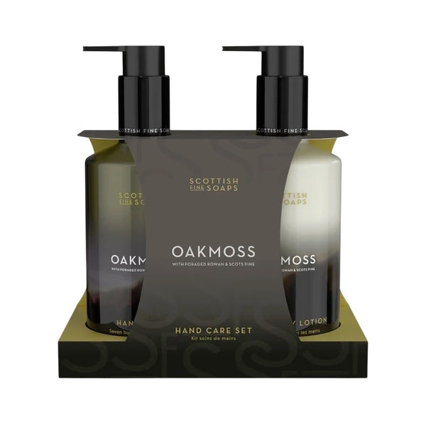Handpflegeset mit Handseife und Lotion, angereichert mit Kiefer, Eberesche und ätherischen Ölen aus Eichenmoos, Zedernholz und Amber. Hergestellt in Schottland.
