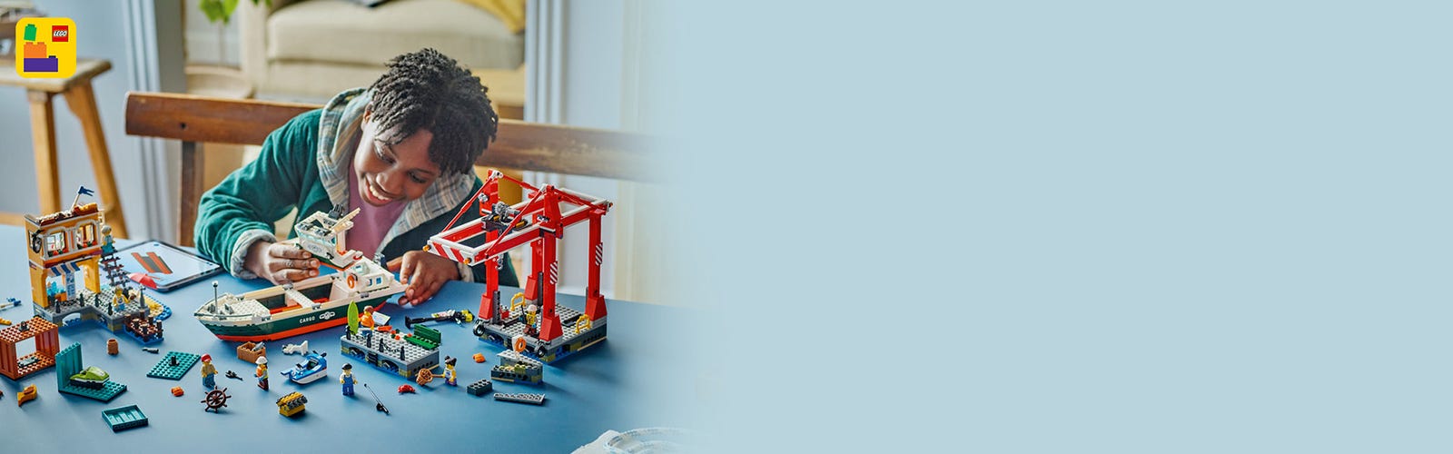 Mit dem LEGO® City Bauset „Hafen mit Frachtschiff“ (60422) für Kinder ab 8 Jahren entsteht eine gemütliche Hafenatmosphäre. Kinder können mit dem Spielzeugkran Container vom LEGO Schiff heben und den touristischen Bereich des Hafens mit Laden, Fischrestaurant und Strand erkunden. Das Set enthält außerdem ein kleineres Spielzeugboot, einen Jetski und 8 Minifiguren für Rollenspiele und fantasievolle Geschichten.