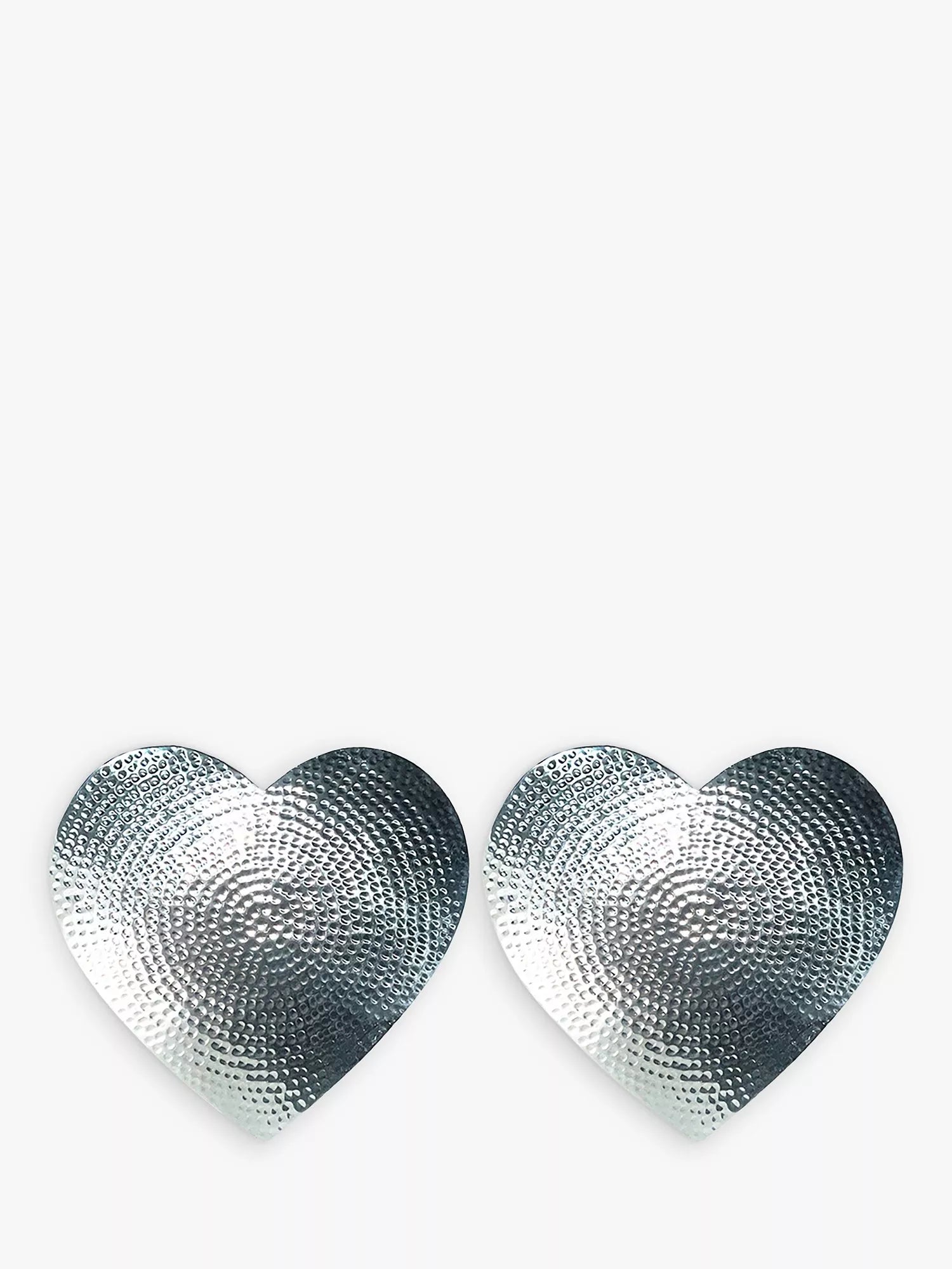 Ein wunderschönes, handgefertigtes Paar herzförmiger Platzsets aus Edelstahl – ein moderner und eleganter Look für jeden Tisch und jeden Anlass.