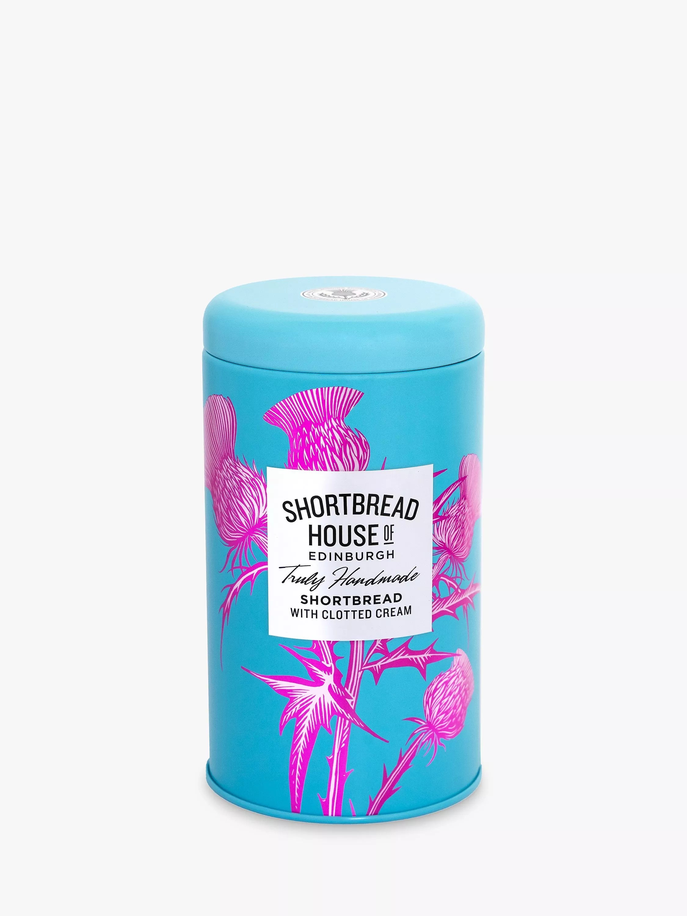 Diese wunderschöne Dose präsentiert Schottlands Nationalblume, die Distel, und enthält etwa sieben einzeln von Hand geschnittene Shortbread-Kekse. Handgefertigt von einem kleinen Team erfahrener Bäcker in Edinburgh, wird dieses Gebäck durch die Zugabe von Clotted Cream zu einem wahren Genuss. Ein Shortbread-Rezept mit reiner Butter und nur den besten Zutaten.