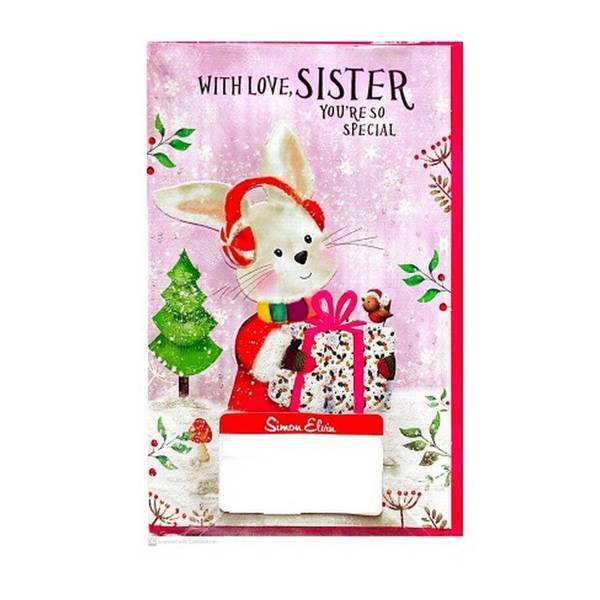Materialkartendesign Katze Weihnachtsbaum Geschenk gedruckt Kaninchen Text Anlass Weihnachten offen verpackte Karte Empfänger Schwester