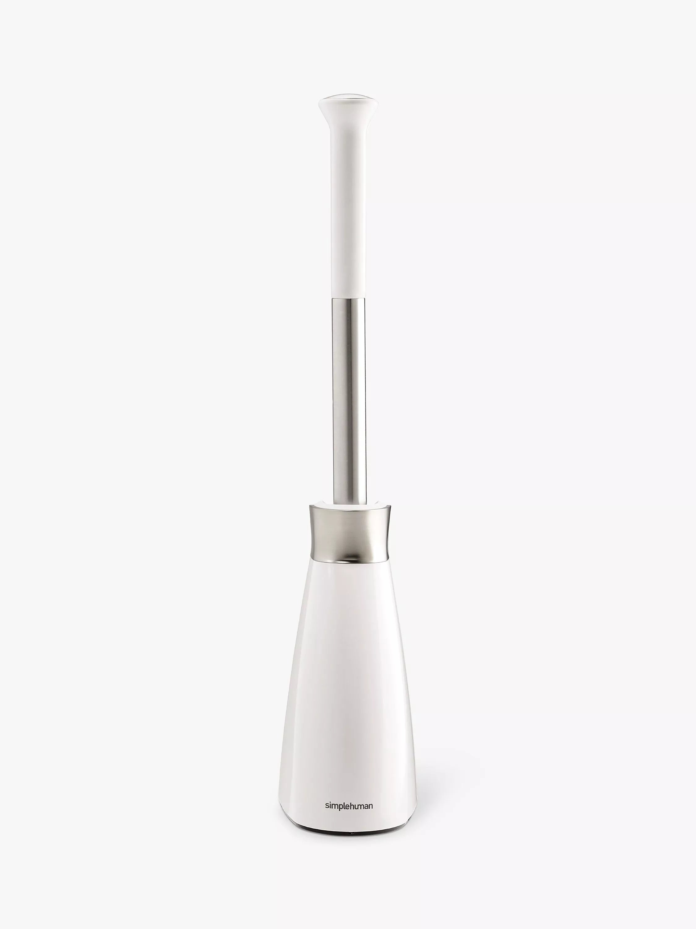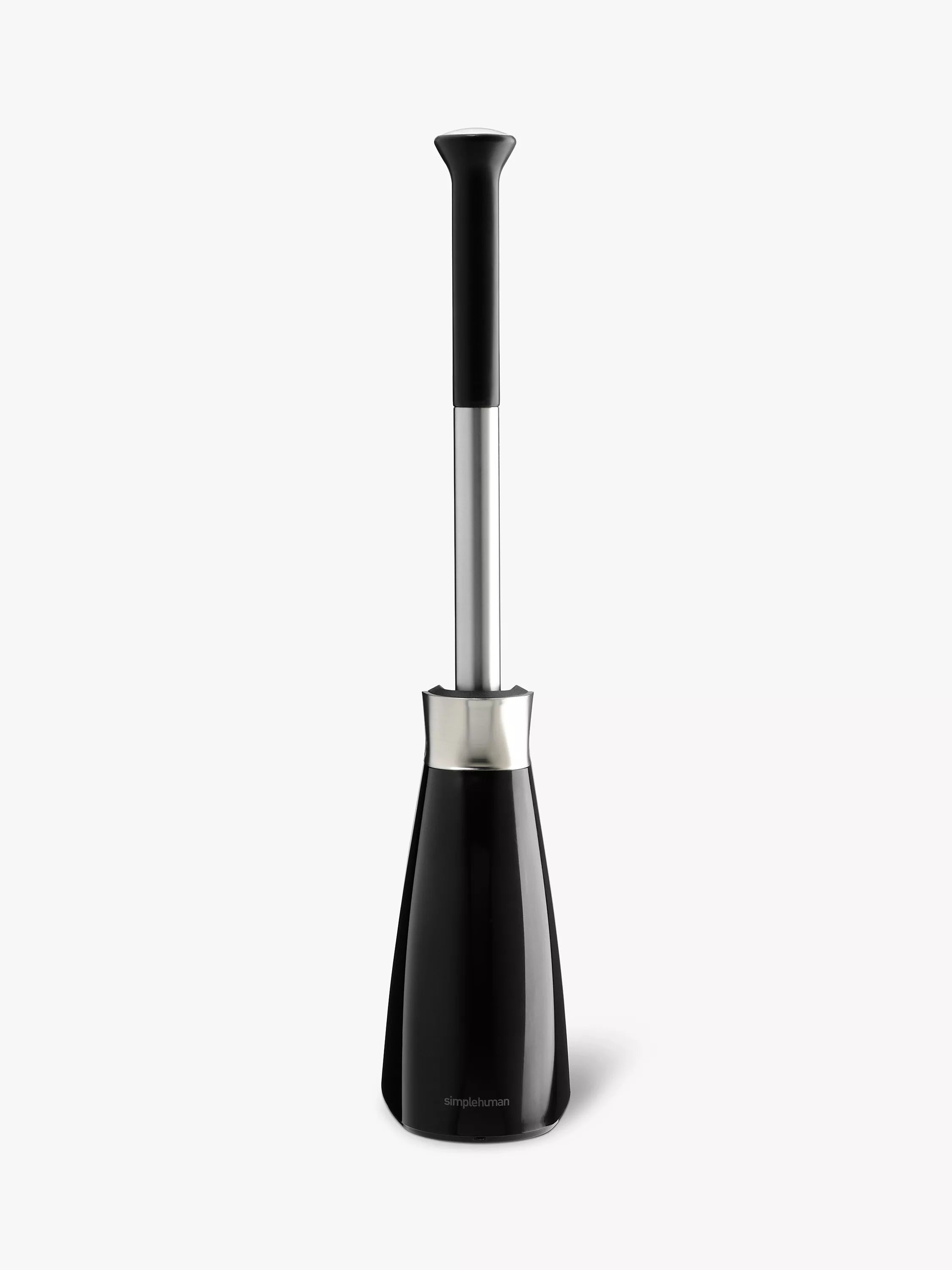 Die simplehuman Toilettenbürste hat eine speziell entwickelte Halbmondform, um schwer zugängliche Stellen am Rand zu erreichen. Ein einzigartiger Magnetverschluss hält die Kappe sicher an der Bürste, sodass beides tropffrei transportiert werden kann. Die schlanke, kuppelförmige Kappe dient zur praktischen Aufbewahrung der Bürste bei Nichtgebrauch und sorgt für Hygiene und diskrete Aufbewahrung.
