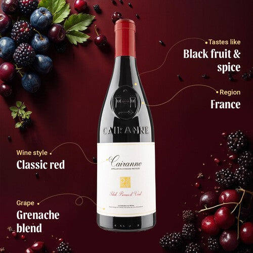This Soleil Pierres et Vent Cairanne Rouge is assembled from exceptional parcels within the renowned Cairanne appellation of the Rhône Valley. It is positioned as representing excellent value while delivering complex flavour profiles comparable to more famous regional offerings.
