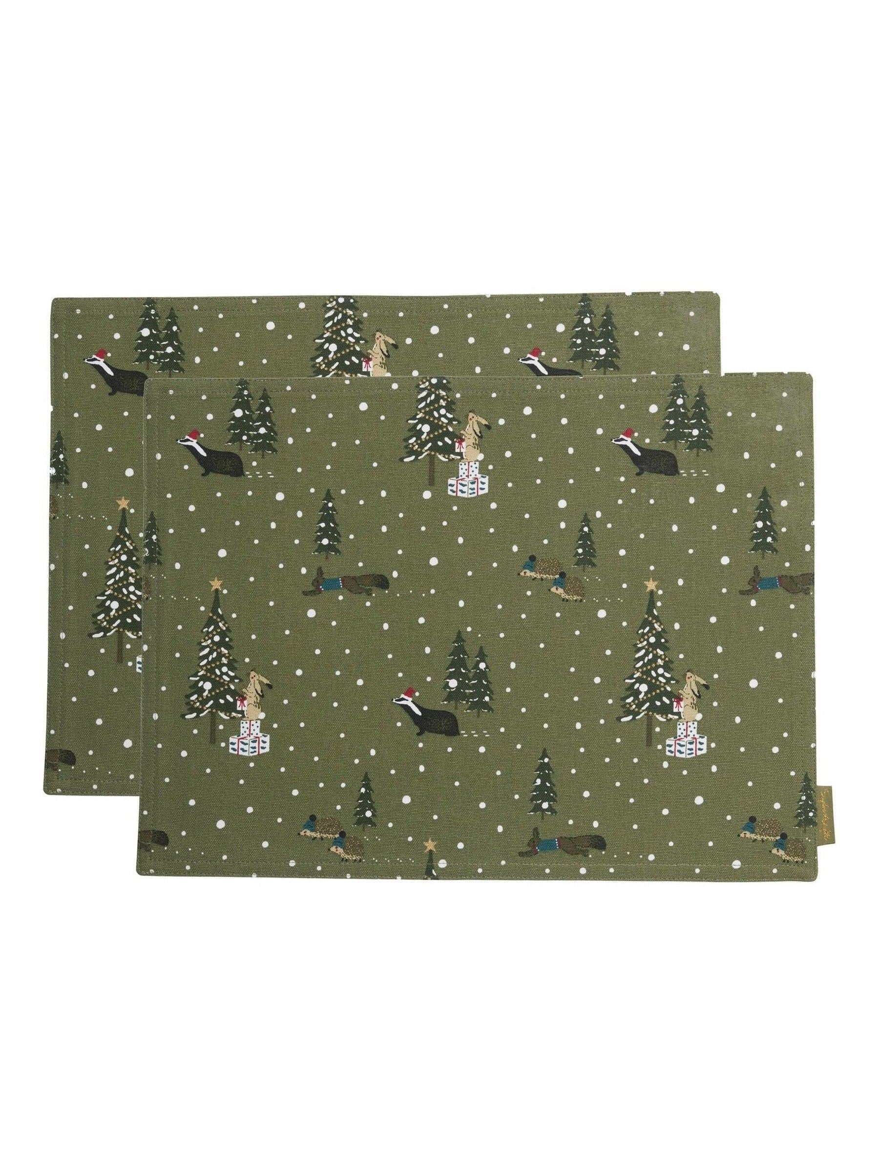 Verleihen Sie Ihrer Tischdekoration mit diesen charmanten Stoff-Platzsets (2er-Set) einen besonderen Touch. Die Platzsets zeigen Igel, Dachse, Hasen und Eichhörnchen in einer winterlichen Weihnachtslandschaft. Ein herzerwärmendes Design für die Saison – perfekt, um eine zauberhafte Festtafel für Ihr Weihnachtsessen zu gestalten. 2er-Set, 40 x 30 cm (H x B), 100 % Baumwolle. Nur punktuell reinigen. Teil der Festtagskollektion. Bei mittlerer Temperatur bügeln.