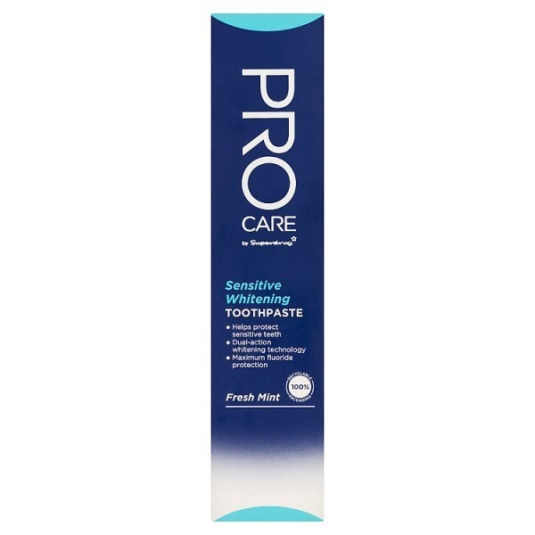 Die Procare Sensitive Whitening Zahnpasta wurde von Mundpflegeexperten speziell entwickelt und bietet maximalen Fluoridschutz, Dual-Action-Aufhellungstechnologie und eine Mischung aus milden Reinigungsmitteln.