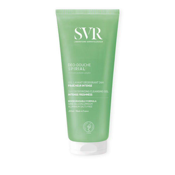 This SVR SPIRIAL is a versatile 2-in-1 all-over deodorising shower gel providing verified 24-hour efficacy. It is suitable for all skin types, even the most sensitive complexions for both adults and teenagers. Its compact 200ml size is ideal for keeping in a gym bag or for travel purposes.