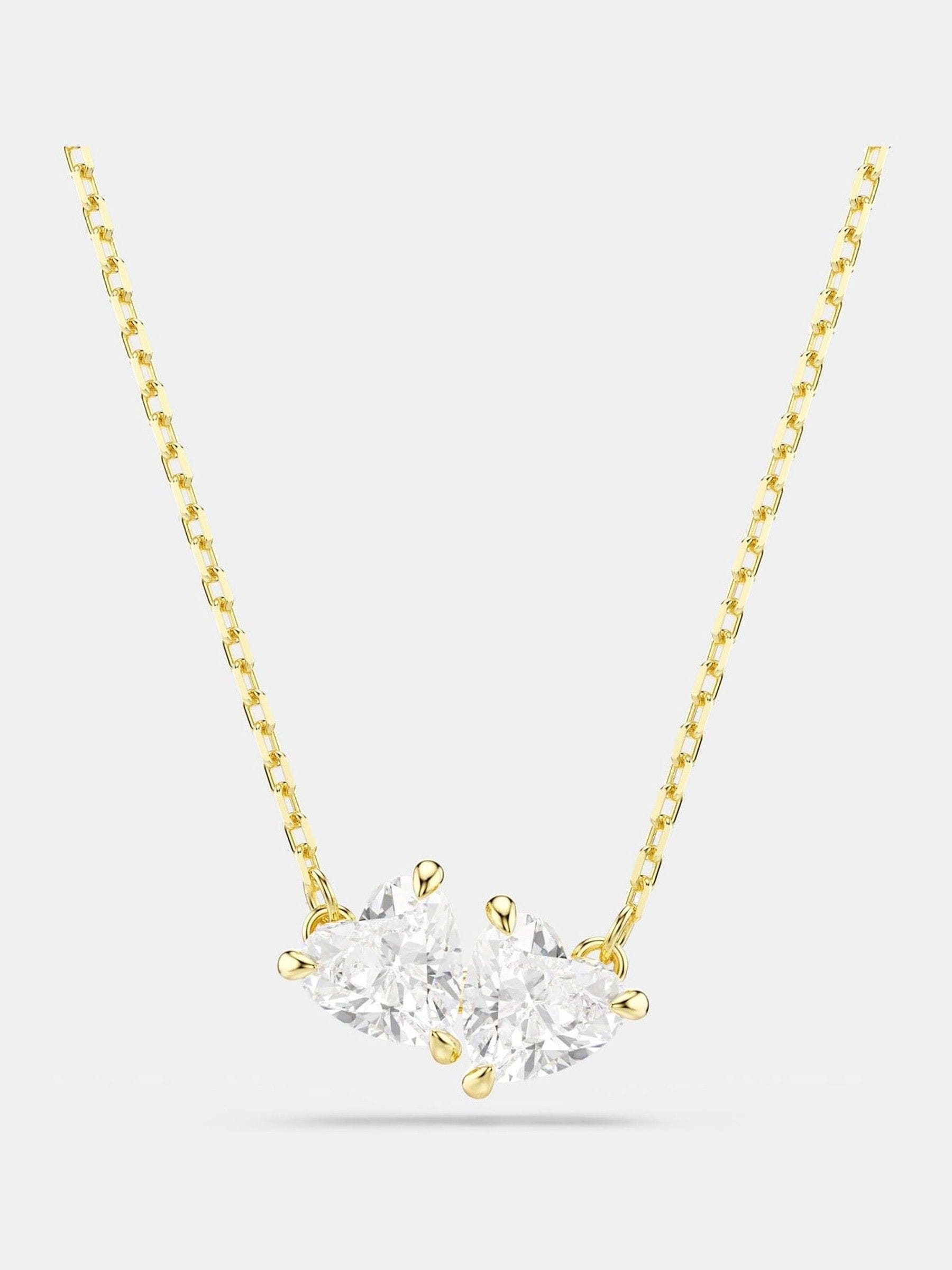 Das Design besticht durch wunderschöne Swarovski Zirkonia in Form von zwei Herzen, eine goldfarbene Beschichtung und die schlichte Eleganz der Kette.
