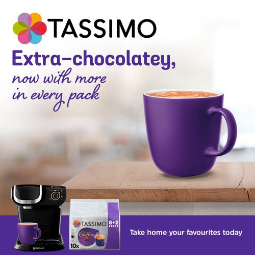 Enjoy the rich, creamy flavour of Cadbury’s hot chocolate designed for everyone to appreciate. These pods combine the familiar taste of Cadbury with Tassimo’s convenient preparation system. They are ideal for creating comforting moments with friends and family quickly and easily.
