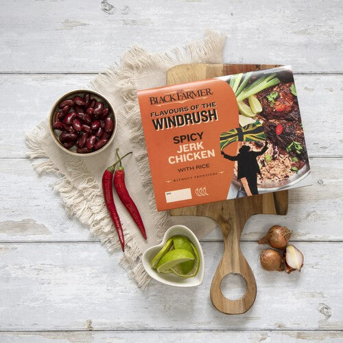 Experience The Black Farmer Jerk Chicken & Rice, a featured dish from the Flavours of the Windrush collection. This ready meal offers a delicious fusion, transporting your taste buds to the vibrant Caribbean islands. It combines carefully crafted elements for a satisfying meal experience.
