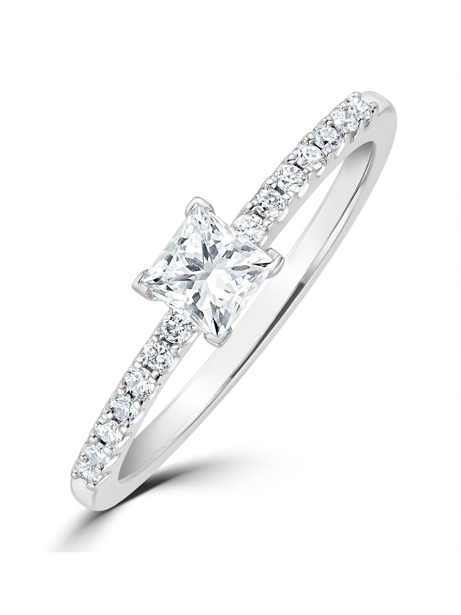 Dieser elegante und strahlende Diamantring im Prinzessschliff besticht durch im Labor gezüchtete Diamanten, die ein exquisites Funkeln erzeugen. Die polierte Fassung aus Weißgold wirkt luxuriös und fühlt sich angenehm an der Hand an.