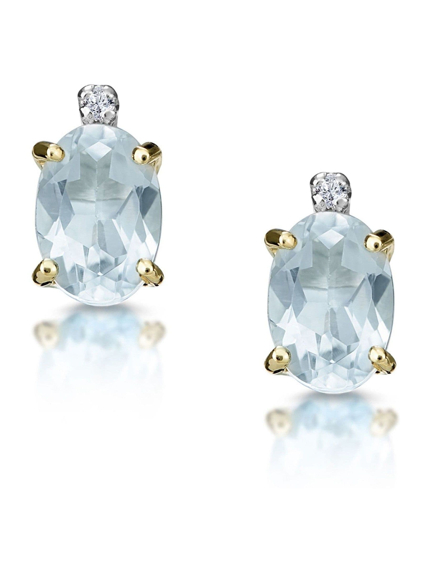 Aquamarin ist der Geburtsstein für März, daher sind diese wunderschönen Ohrstecker ein ideales Geschenk für alle, die in diesem Monat geboren sind. Die herrlich schillernde Farbe des Aquamarins harmoniert perfekt mit dem Funkeln der 0,02 Karat Diamanten in Premiumqualität und der Fassung aus 9-karätigem Gelbgold.