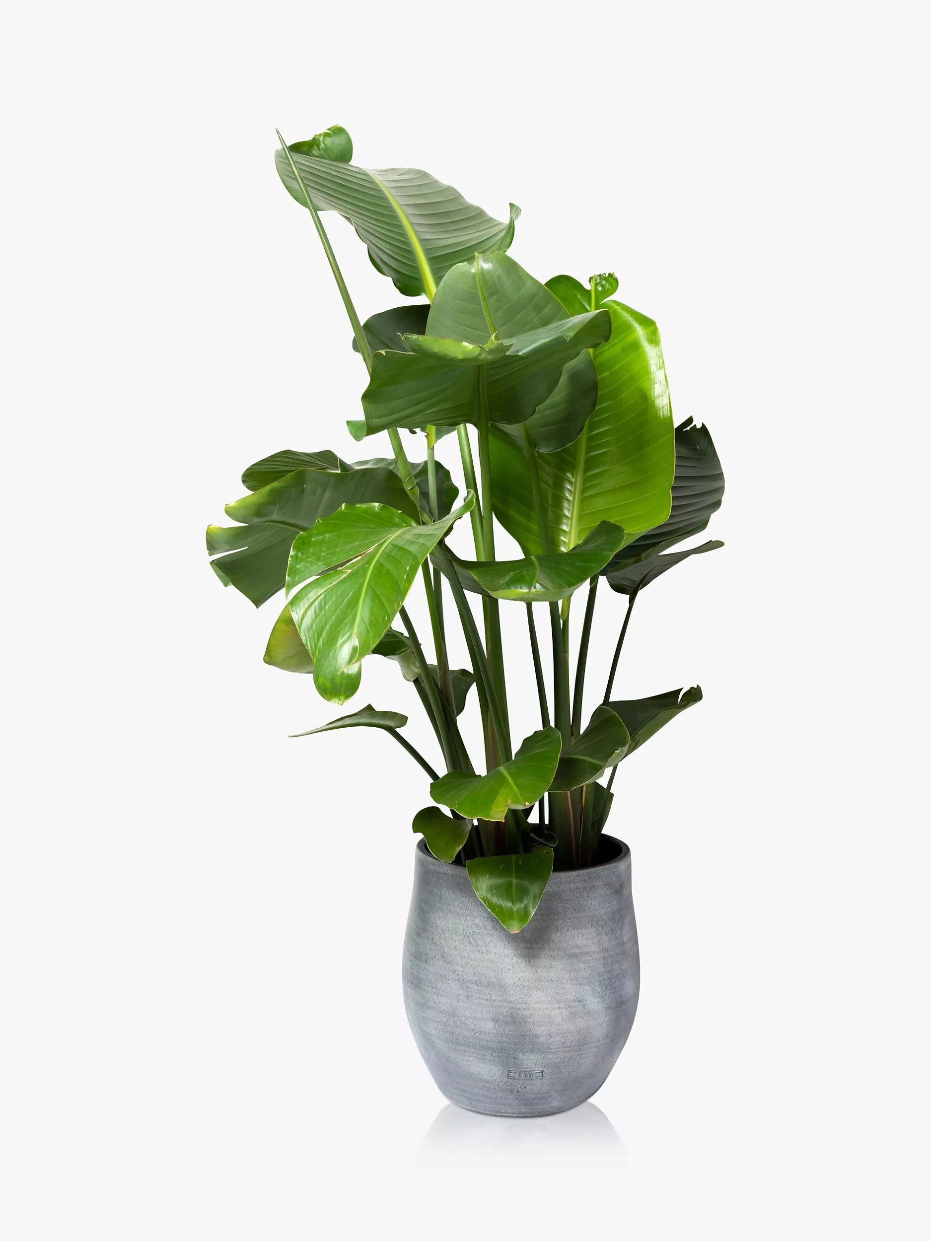 Eine XL Strelizia Nicolai, auch bekannt als Paradiesvogelblume, ist eine atemberaubende Bereicherung für Ihr Zuhause. Diese außergewöhnliche Pflanze ist von absoluter Schönheit, und ihre riesigen, paddelförmigen Blätter sind ein echter Blickfang. Die exotische Pflanze ist auch unter dem Namen Wilde Banane bekannt und bildet zusammen mit dem großen Keramikgefäß in Betonoptik von The Little Botanical ein echtes Highlight.