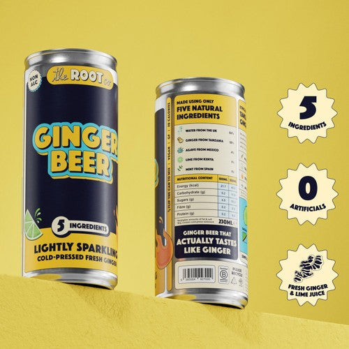 Presenting our healthy, 'modern version' Ginger Beer. Only 5, recognisable ingredients in this can, and 0 artificials. Fresh ginger, fresh lime, fresh mint, agave syrup and water, each from a single origin.