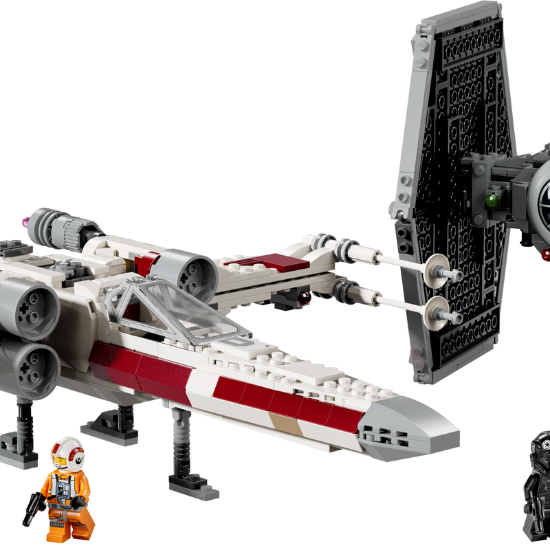 Recreate mash-up starfighters from the LEGO® Star Wars™: Rebuild the Galaxy Disney+ special with this TIE Fighter & X-Wing Mash-up (75393) buildable toy playset for kids. A cool LEGO gift for boys, girls and any Star Wars fans, the set features a ‘TIE-wing’ and ‘X-fighter’, each with an opening cockpit for a LEGO minifigure and 2 spring-loaded shooters. Simply remove the locking pins to detach the wings from the hull of each buildable vehicle toy and rebuild to create the familiar, iconic TIE fighter and X-wing. The wings of the ‘TIE-wing’/X-fighter are adjustable for flight and attack modes and, once rebuilt as the X-wing, the retractable landing gear can be used.