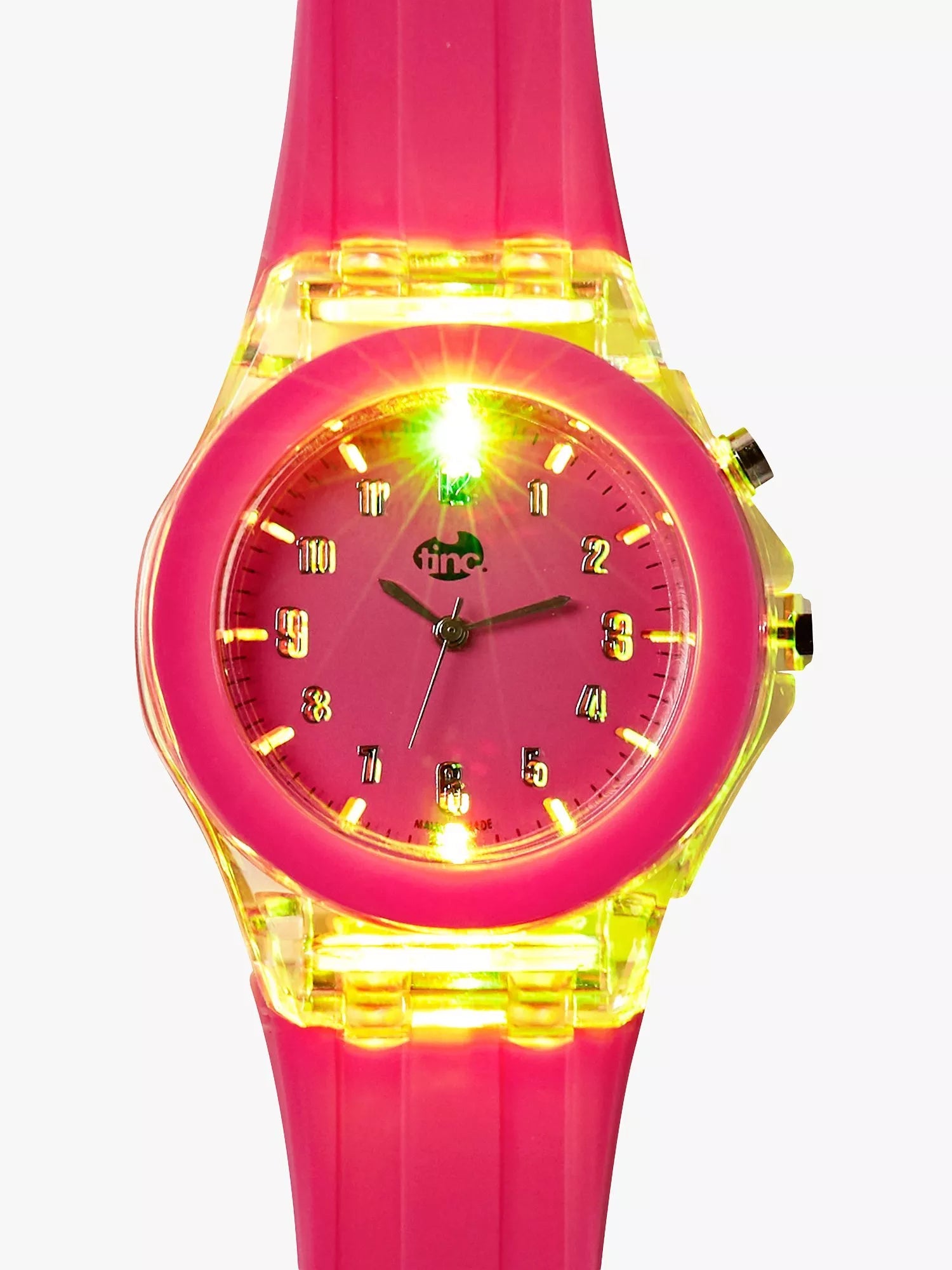 Nimm deine Tinc Disco überallhin mit! Eine fantastische Disco-Uhr für Kinder mit Leuchtfunktion! Trage sie und hab deine eigene tragbare Disco-Lichterkette am Handgelenk – und kannst gleichzeitig die Uhrzeit ablesen!