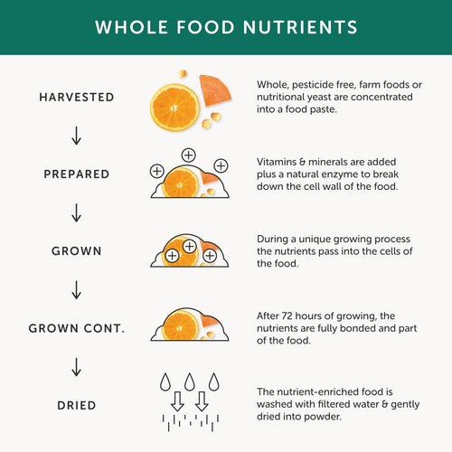 • Contains whole food, ocean-sourced, and plant-based ingredients.