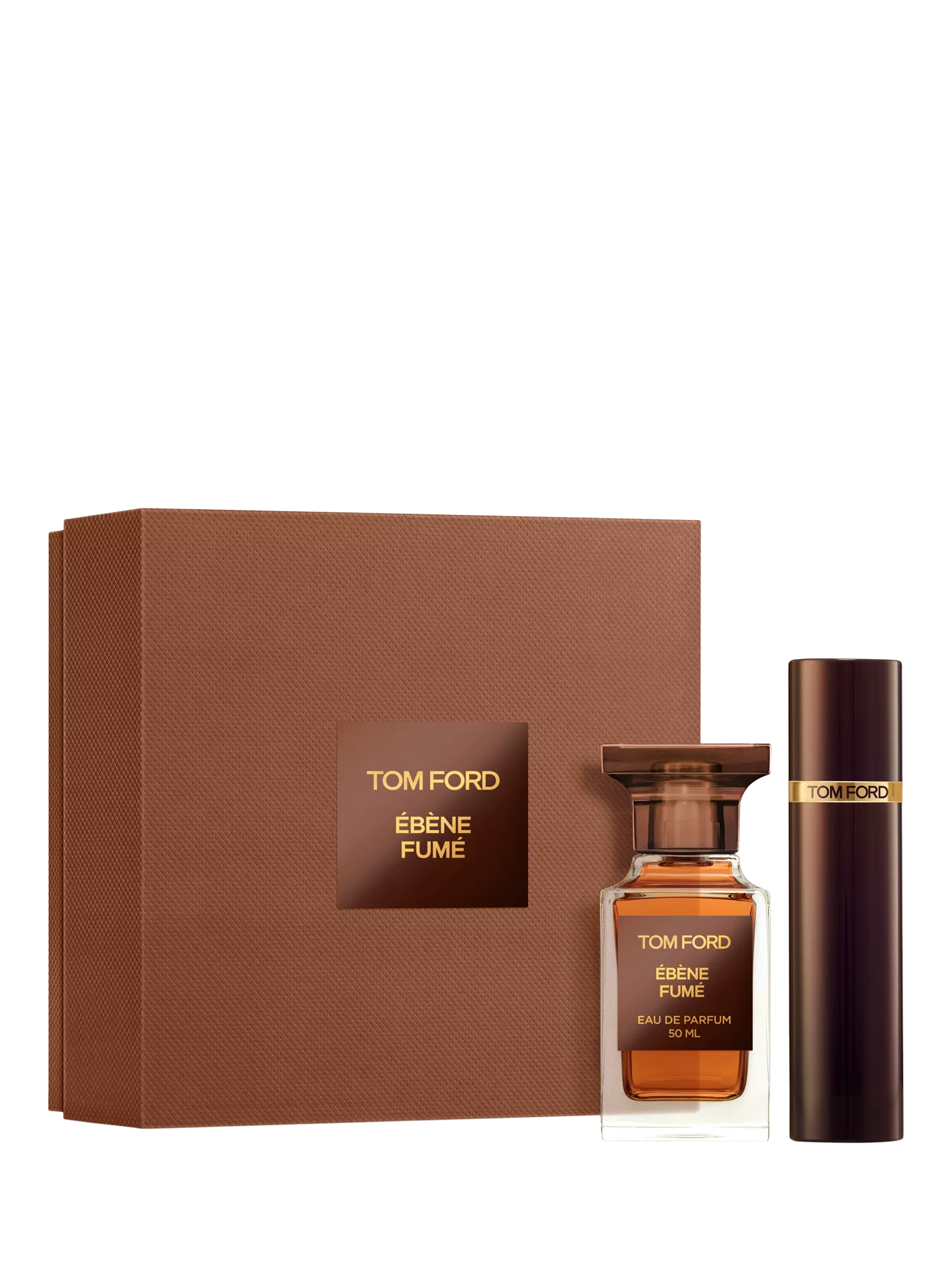 Das Geschenkset Ébène Fumé. Ein meditativer, holzig-amberartiger Duft mit Noten von Palo Santo und Rose. Dieses Set enthält einen Flakon Eau de Parfum in Originalgröße und einen Reisezerstäuber.