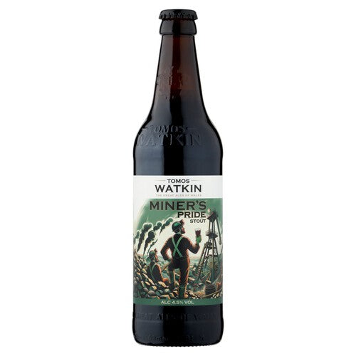 Miner's Pride by Tomos Watkin is a premium Welsh stout crafted to honour ancestral mining heritage. This rich brew is dark in colour, reflecting the deep earth and coal mines of Wales. Each sip unearths a bold flavour profile resulting from traditional brewing methods.