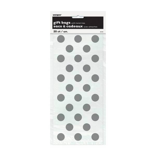Geschenktüten aus Zellophan mit Polka-Dot-Muster, inklusive Verschlussbändern. Größe: ca. 28 x 128 cm.