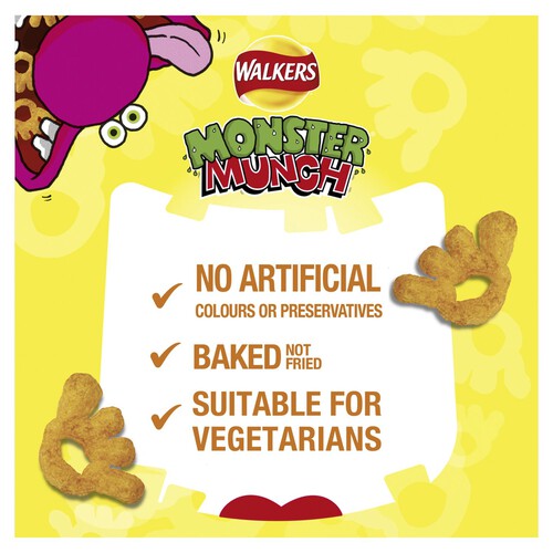Enjoy the crunchy, tasty, and spooky flavour of Walkers Monster Munch in a convenient multipack format. These popular snacks come individually portioned, making them easy to pack for lunch or on the go occasions. They are manufactured using a baking process rather than frying.