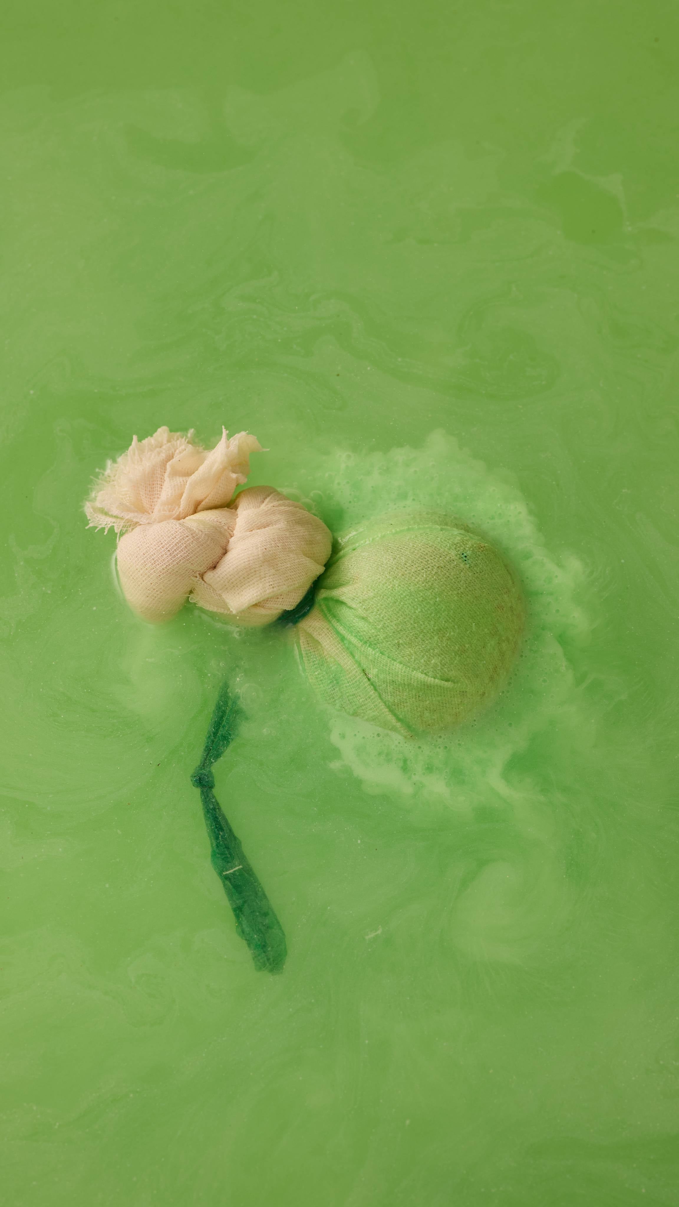 Eingewickelt in ein biologisch abbaubares Musselintuch: Wenn Sie abschalten und entspannen möchten, lassen Sie einfach das Badewasser ein und legen Sie sich zusammen mit dem Tuch hinein.