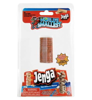 • The miniature Jenga version measures less than 2.5 inches tall when fully stacked.