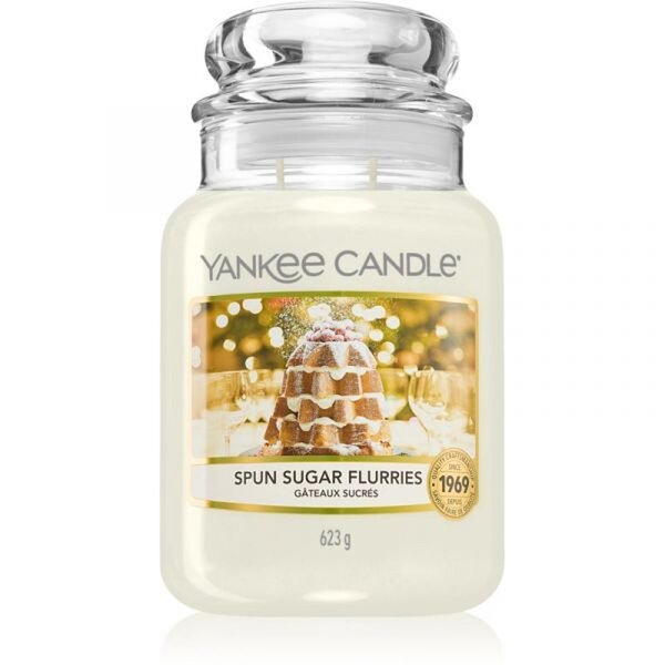 Die Yankee Candle Spun Sugar Flurries Kerze im großen 623g-Glas ist eine Premium-Kerze der Marke Yankee Original.