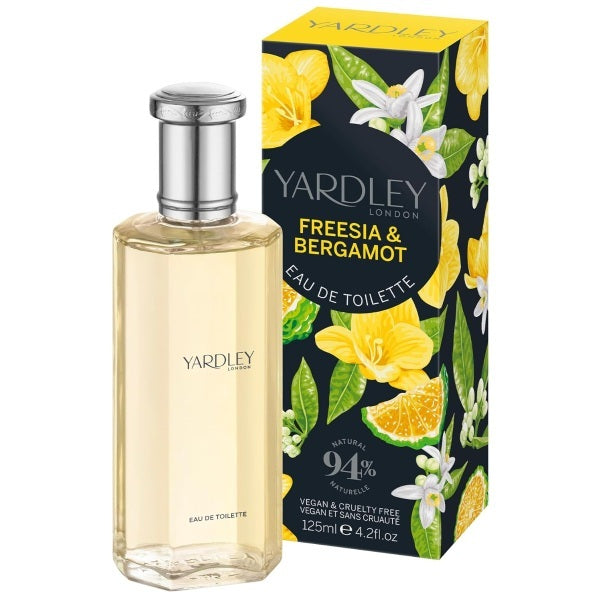 Yardley Londons Freesia & Bergamot ist ein erfrischender, leichter Zitrus-Blumenduft mit belebenden Kopfnoten von Bergamotte, Zitrone, Mandarine und Zypresse. Die Herznote entfaltet sich zu einem lebendigen und aromatischen Blütenduft aus Freesie, Maiglöckchen, Ingwer und Pfeffer, abgerundet durch eine warme, sinnliche Basis aus Sandelholz, Moschus und Amber.