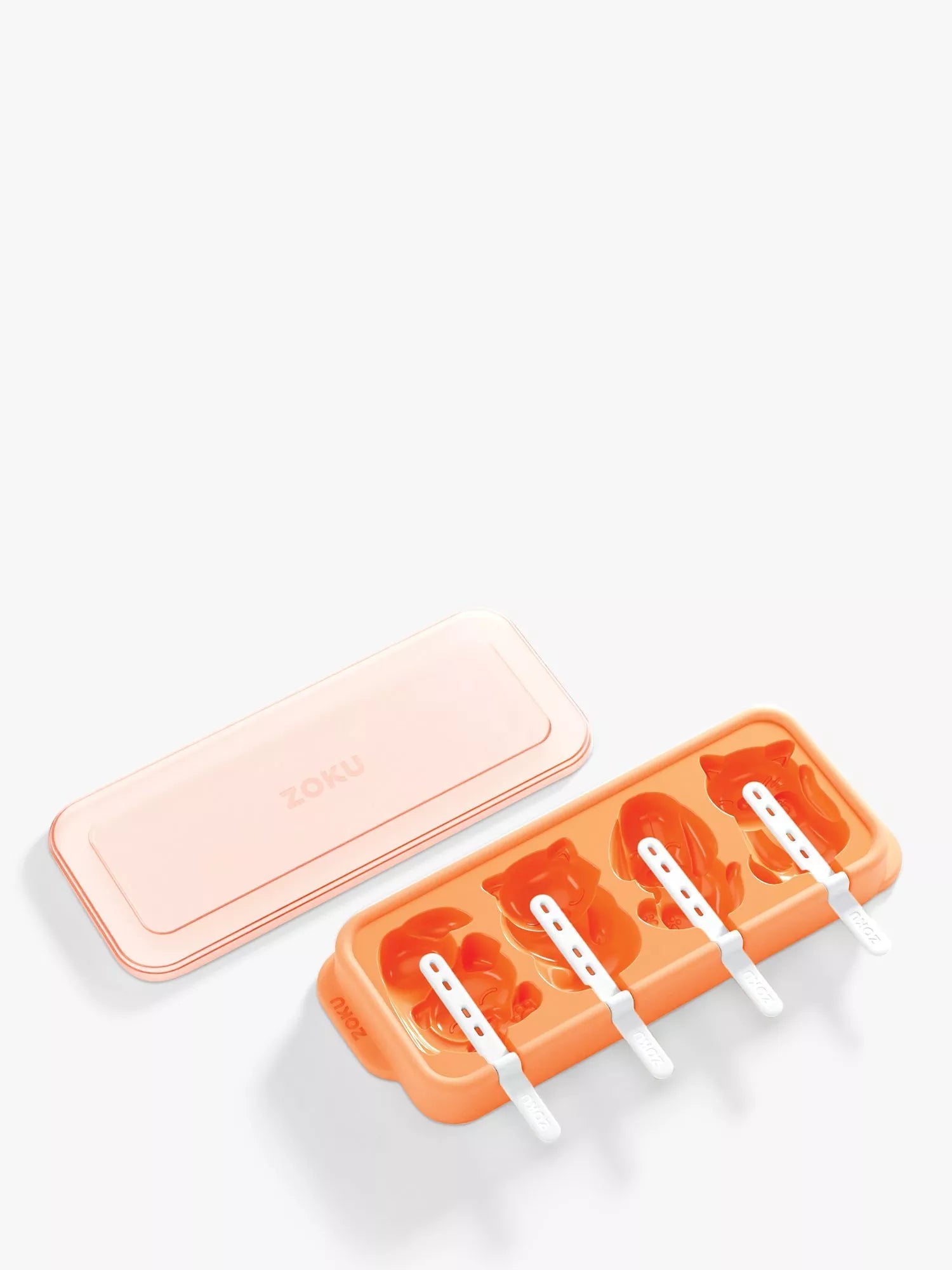 Dieses Tablett enthielt vier verschiedene Katzen- und Hundeformen, vier Stäbchen und einen Deckel.